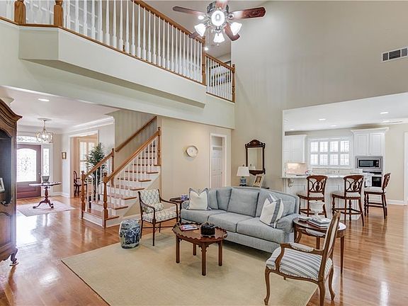 Soaring ceilingsWrought iron railingsBright living spaceGorgeous wall of windowsArchitectural columnsStunning front porchPlantation shutters