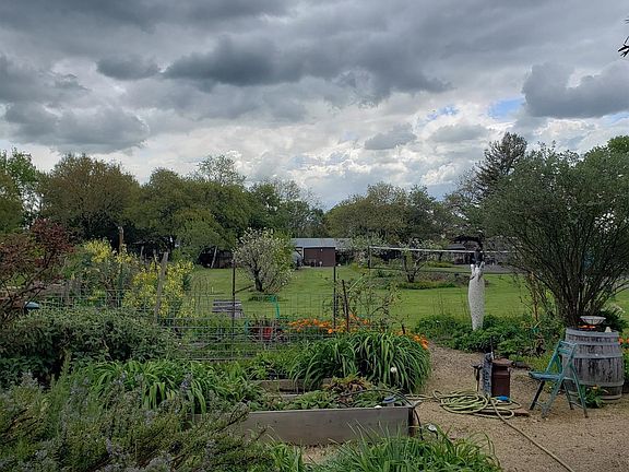 Custom California ranch style with upgraded thermapane windows. insulation, plumbing, electrical, heating, garden and landscaping irrigation systems, Gigabit Internet, 3 full RV pads, orchard, new roof, solar, outside kitchen and party area.