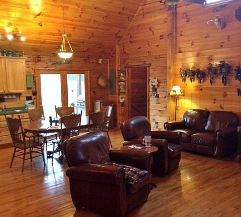 A secluded property with over 6 acres. This log cabin home gives you tons of privacy with great country views. Home includes a 3 car attached garage, and a large pole barn. Built in 2006, it's just like brand new. 2 bedrooms on the main level with a den for extra living space, a loft bedroom with a bathroom, covered front and back porches, and a pond! Don't miss out. Call today!