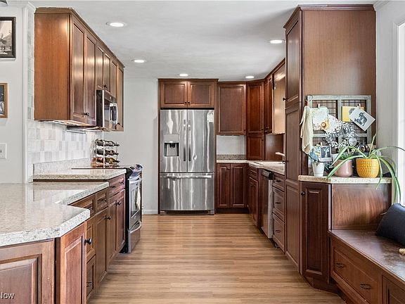 Come one come all to this fabulous ranch style home. This home offers so many features, every cooks dream kitchen, many cabinets, breakfast bar, so much counter space. The formal dining room welcomes your family and room for your guests. Not to mention the spectacular great room you will want to show off. Gas fireplace, cathedral ceiling, ceiling fan, sky light, built-in cabinets, and counter space for your refreshments, sliding glass doors to wonderful deck. The master bedroom is amazing (16x22), walk-in closet (9x11), updated master bath. You have access to your own private deck for your morning coffee or tea. The basement very neat and clean waiting for you to finish, stud walls are up. 2 car att. garage, blacktop driveway, fenced-in yard. Covered front porch, 2 decks, new water softener, 1st floor laundry. All sizes, square feet, and ages estimate.