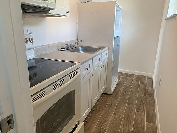 Completely renovated two bedroom one bath concrete block house. New central air, plumbing and electrical fixtures. New windows, doors, tile, kitchen,bath, and paint. Coin operated laundry on property.