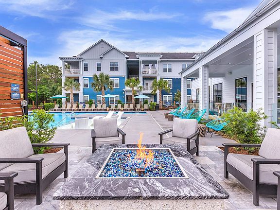 - Exterior features: , 2 Pawtopia Pet Parks, 9Ft or 10Ft Ceilings (*Depending on the floor), Alpine White Kitchen Upper Cabinets, Baltic Kitchen Base Cabinets, Bluetooth Keyless Entries, Business Center, Close Proximity to Retail Stores & Coast, Concierge, Curved Shower Rods, Designer Bath Vanity Light, Easy Access to Major Highways and Interstate 40, Energy-efficient LED Lighting, Flooring: Wood, Game Room, Gas Fire Pit with Seating, Glass-panel Showers, Golf Simulator, Gooseneck Kitchen Faucet, High Reflective Interior Doors, High Reflective White Ceilings, High-speed Internet Ready, Kwikset Hancock Knobs in Black, Kwikset Milan Levers (ADA) in Black, Matte Black Kitchen and Bath Fixtures, Millennium Kitchen Pendants, Modern Kitchens with GE Stainless Appliances, Moen Genta & Glass-panel Showers, Moen Genta Kitchens, Moen Genta Vanities with Lights, On-Site Maintenance, Outdoor Wi-Fi and USB Ports in Gathering Areas, Pawtopia Pet Spa, Pet Shampoo Bar, Port City Java Gourmet Coffee Bar, Private Balconies or Patios, Public Parks Nearby, Resident Events and Socials, Schlage Black Single-Sided Deadbolts, The Juice Coffee Bar, Titanium Glass Recycled Countertops, Washed-Oak Shaw Foundation Plank Flooring, Wi-Fi in Common Areas