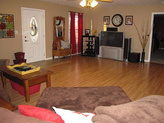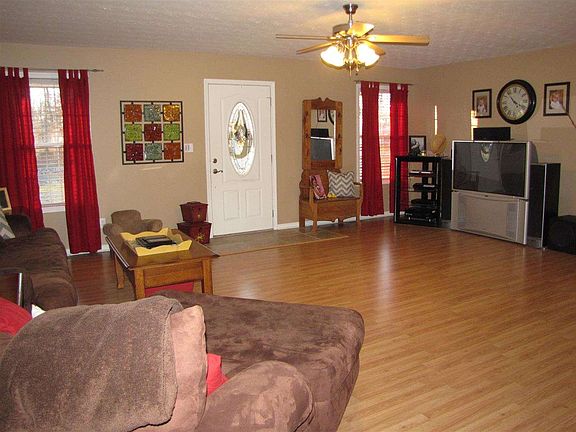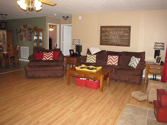 Charming brick family home with over 2 acres! Split-bedroom floor plan with master bedroom and bath on one side and the other 2 bedrooms on the other side. Nicely landscaped, covered front porch, spacious deck, 2 car detached garage with fully floored attic area for extra storage. Interior features open kitchen, dining and living room area, large utility room, and walk-in closet in master bedroom. Built in 2001 with recent updates including ceramic tile, H&A, refrigerator and water heater. Move-in ready!