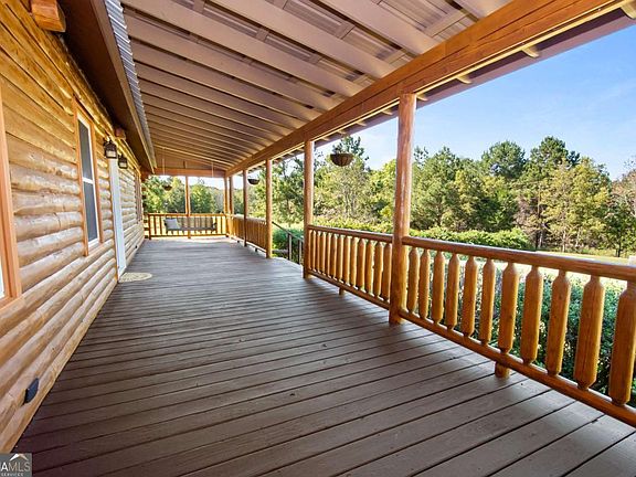 This charming, custom built log cabin is perfectly situated on 11.5 private acres and offers a peaceful retreat with modern updates throughout. A long, tree lined driveway welcomes you home as you cross over a year round creek, setting a serene tone from the moment you arrive. The land includes mature vegetation, a producing muscadine vine, and a mix of cleared acreage and fenced pasture ideal for horses, livestock, or gardening. To the side of the house, you'll find over a dozen mature pecan and walnut trees, along with persimmon trees, adding to the natural beauty and bounty of the property. Nature lovers and outdoor enthusiasts will appreciate the hunting potential and quiet surroundings, while families will love being in the highly sought after Rosemont School District. The main home has been completely updated, featuring a new HVAC system, energy efficient windows, and new exterior doors. Inside, the home offers 4 spacious bedrooms and 3 full bathrooms in a desirable split bedroom floor plan, providing added privacy for the primary suite. The open concept main living area boasts sky high ceilings and plenty of natural light. It highlights the custom built beam! The kitchen is equipped with granite countertops and flows beautifully into the living and dining spaces, creating a welcoming area for everyday living or entertaining. The primary suite is a true retreat, featuring high ceilings, a private loft, a walk-in closet, and double vanities. It also includes an attached bonus room perfect for a home office, sunroom, or nursery. A spacious laundry room adds everyday convenience, and an additional loft bedroom with a full bath upstairs makes a great space for guests or teens. Both the front and back of the home feature full length covered porches, with a porch swing ready for you to enjoy the peaceful views. Additional features include an attached two car carport and a second carport ideal for a boat or extra storage. On the property, you'll also find a detached guest house that can serve as a teen suite, in-law quarters, or even potential rental income. This unique property offers privacy, comfort, and flexibility all within a short drive to town conveniences. It's truly move in ready and waiting for you to make it your own. Call today for your private tour!