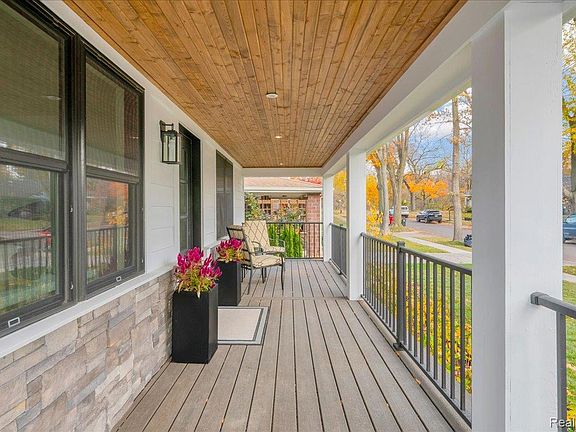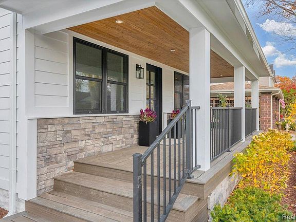 The exterior showcases new Hardie Plank siding with a detailed metal roof over the porch, complemented by all new Pella windows, doors, roof, electrical, and plumbing for long-term durability and modern efficiency. A dual zoning system for air conditioning and heating ensures year-round comfort. Expansive Trex decking spans the front, side, and back outdoor spaces, ideal for morning coffee or evening gatherings. A new driveway, updated landscaping, and epoxy-coated garage floor complete this impressive home.