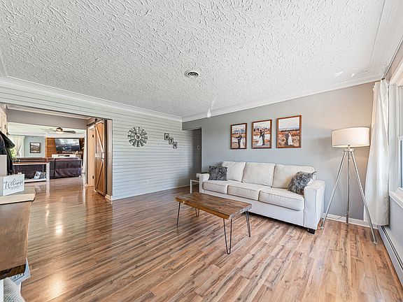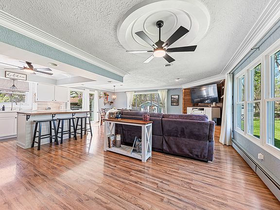 Welcome to this beautifully updated ranch home in the heart of New Lenox! Nestled in a neighborhood just minutes from the Metra station, interstate access, the New Lenox commons, and Corcoran Park/playground, this charming home offers both convenience and comfort. With 1600 square feet of living space and an array of thoughtful improvements, the home exudes a modern and inviting atmosphere. Inside, you'll discover a wonderful open floor plan adorned with wood laminate flooring, custom trim, white doors, and a palette of warm tones. The main living area seamlessly integrates a spacious family room, a cozy dinette, and an updated kitchen featuring stainless steel appliances and a large butcher block island, making it ideal for gatherings and everyday living. The sun-filled living room showcases an eye-catching wood plank accent wall, adding a touch of rustic charm. This home boasts 3 bedrooms and 2 full bathrooms, ensuring ample space for relaxation and privacy. Outdoor living is equally delightful, whether you're unwinding on the cozy front porch or hosting gatherings in the large backyard complete with a spacious patio and two sheds (one with electric), all complemented by an oversized/heated garage. Throughout the home, numerous updates enhance functionality and aesthetics, including new windows, a roof, a reverse osmosis system/whole house water filter, a boiler, a radon system, upgraded kitchen appliances, a garage door, and fresh exterior paint. Don't miss this opportunity to make this meticulously maintained home yours!