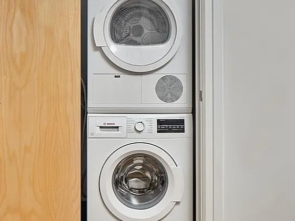 Experience breathtaking vistas of the East River, Manhattan skyline, and the Statue of Liberty from the expansive floor-to-ceiling windows in this west-facing luxury studio. Revel in the thoughtfully designed interior featuring custom closets and a sleek kitchen equipped with Italian cabinetry, Caesarstone countertops, Bosch appliances, and an in-sink disposal. Each residence includes central air, USB outlets, an in-unit washer/dryer, Grohe bathroom fixtures, blackout bedroom shades, dimmable lighting, and white oak hardwood floors.