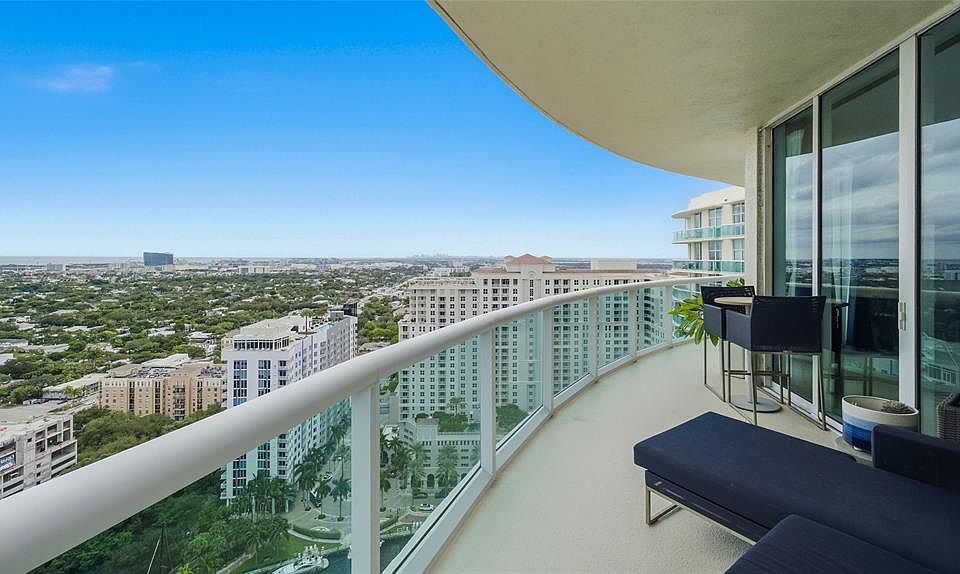 Expansive glass walls fill the space with light, while open plan living flows seamlessly to generous terraces perfect for entertaining or quiet reflection. The elegant interiors feature 10 ft high ceilings, premium finishes, and a designer kitchen. Wake up with direct ocean views and unwind with golden river sunsets and city lights all from your wraparound balcony. Residents enjoy access to premium amenities including a resort-style pool, gym, and 24-hour concierge. Walking distance to finest dining, shopping, and nightlife in downtown Fort Lauderdale. New Hvac installed in 2023