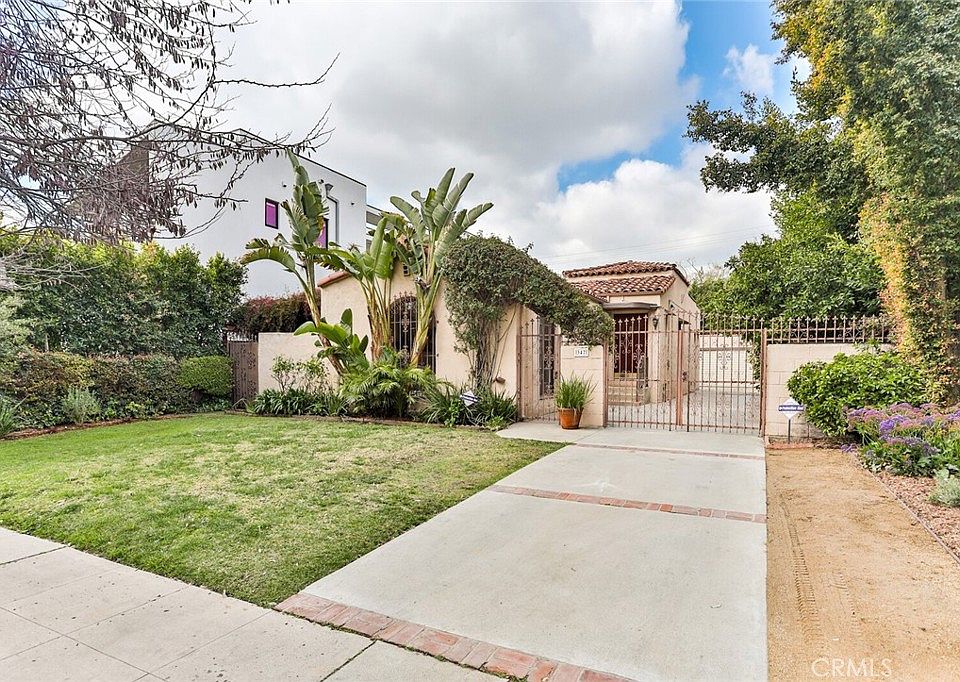 Welcome to this stunning, timeless 1927 Spanish home on one of the best streets in Beverly Grove. Upon entering, from the beautifully landscaped front yard, you’re greeted with an abundance of natural light and the gleaming hard wood floors. As you move into the space, off the entry there's a perfect nook for a home office or sitting area. There is a sunken living room that is abundantly spacious with a coved ceiling, French doors, plenty of windows and a decorative fireplace. Open the French doors to a side patio with a trellis covered in magical vines, perfect for dining alfresco or sipping your favorite drink. The large kitchen is bright and airy with a great flow, leading both to the side patio and dining room with high ceilings providing the perfect ambiance for amazing dinner parties. Down the hall you’ll find three large bedrooms, two baths, and plenty of closet space. The rear bedroom leads to a newly landscaped, low maintenance yard complete with drip irrigation. There are several fruit trees along the driveway with plenty of parking. The California garage provides additional storage for all your toys. This home is conveniently located close to the Beverly Center, Melrose, The Grove, and all the restaurants in West Hollywood. Welcome home!