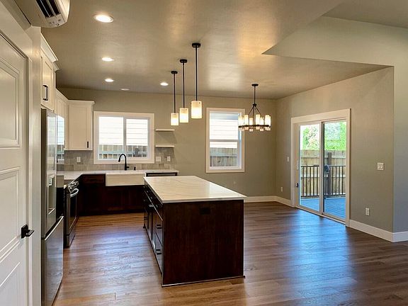 This 3 bedroom, 2 bathroom open floor plan is single level & being built by Taylored Elements Construction to Earth Advantage standards with a high level of energy efficiency including solar panels, EV charger in the 2 car garage and ductless heating and cooling system. The primary living area will have a gas fireplace, lots of windows, back deck off the dining area, the kitchen has a large island & pantry adjacent to the entry hall storage closet. The home will have engineered hardwood floors in main living areas, carpet in bedrooms, quartz countertops, high end fixtures & custom cabinets throughout with soft close drawers. The primary bedroom will have a coffered ceiling, dual sink bathroom vanity & walk-in closet. The yard is fully landscaped with drip irrigation and side to back-yard 6 foot fencing. Estimated completion timeframe is September. Property taxes will be established upon completion. West Village is just .8 miles from downtown - Come join the community!