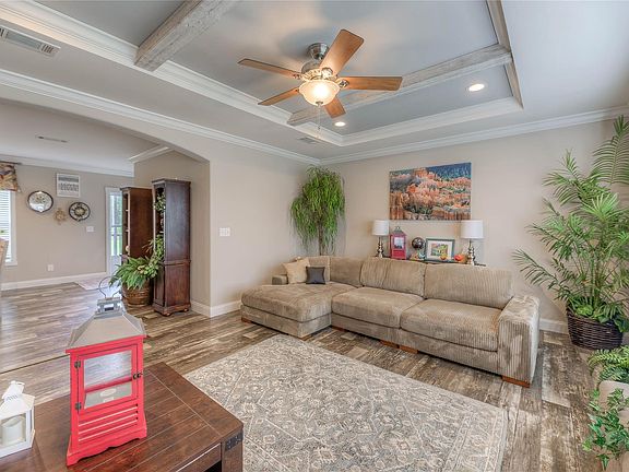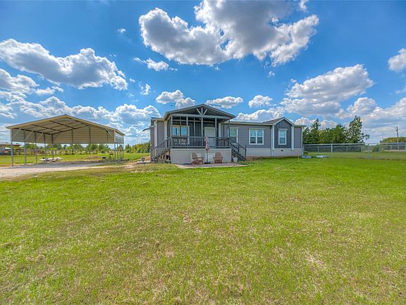 Discover this charming 3-bedroom, 2-bath home nestled on 3 acres of serene land. Featuring an open floor plan flooded with natural light from numerous windows, the home offers comfort and style. Built on sturdy concrete runners for added stability, it includes a spacious enclosed front deck perfect for relaxing or entertaining. The property also boasts a double carport, a storage building, and a dog kennel. Inside, enjoy vinyl floors throughout, sheetrock walls, and modern granite countertops in the kitchen and baths. The large primary bath features a deep soaking tub and a spacious walk-in shower. Recent updates include new appliances, and blinds with window valances are included for added convenience. This property combines rural tranquility with modern amenities—ready for you to call home!