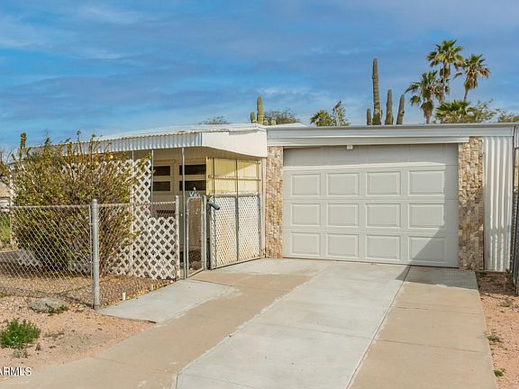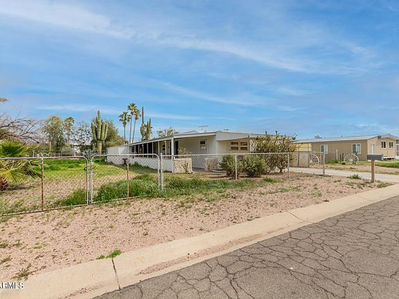 Fantastic opportunity to own this charming recently affixed mobile home, w/ welcoming covered patio, in Azure Skies! With 3 beds 3/4 and 1/2 baths. Discover a recently updated open layout highlighting waterproof vinyl tile flooring & cool palette. The spotless kitchen features granite counters, white shaker cabinets, brand-new SS appliances, & a peninsula complete w/ breakfast bar. The main bedroom enjoys ample closet space & a private half bath. The enclosed laundry room includes a washer & a dryer for extra convenience. Plenty of secure storage and room for all of your toys. Enjoy beautiful views of the blue sky in the backyard w/ natural turf & plenty of space for hosting memorable get-togethers. Convenient location minutes away from restaurants & shopping. What are you waiting for?