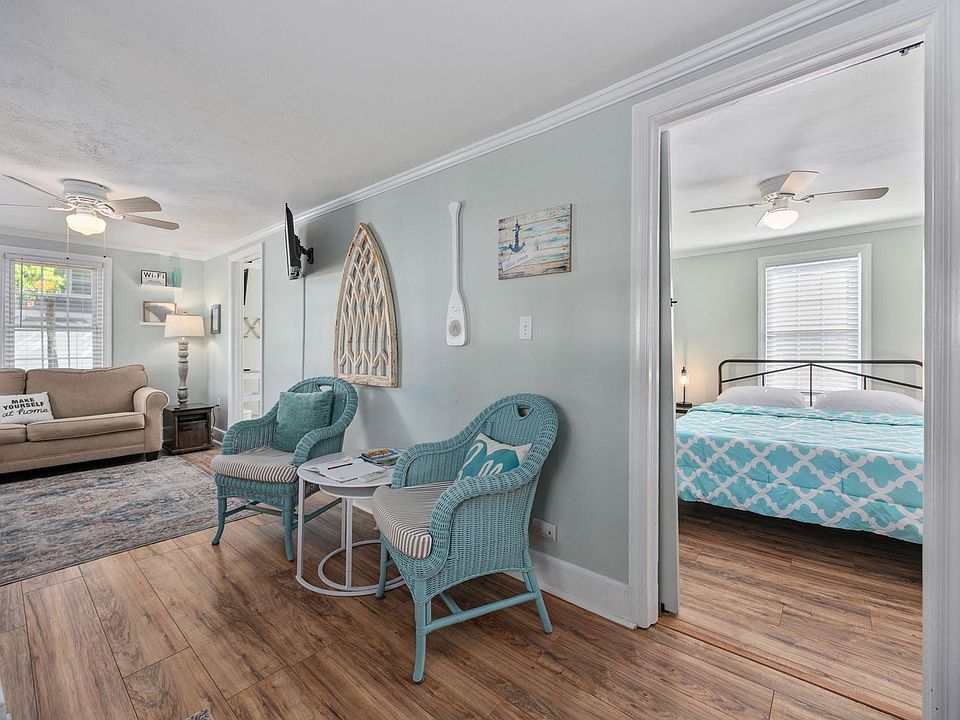 If you are looking for peace, privacy and serenity close to the ocean with modern upgrades, look no further than Pura Vida. This beautifully decorated cute and tasteful 2 bed/1 bath cottage located on the front half of the property can be rented by itself or with the more spacious 3 bed/2 bath home located on the back half of the property, so the whole family can come together on one property while still having their own separate spaces to retreat to. Located just 4 blocks from the public beach.