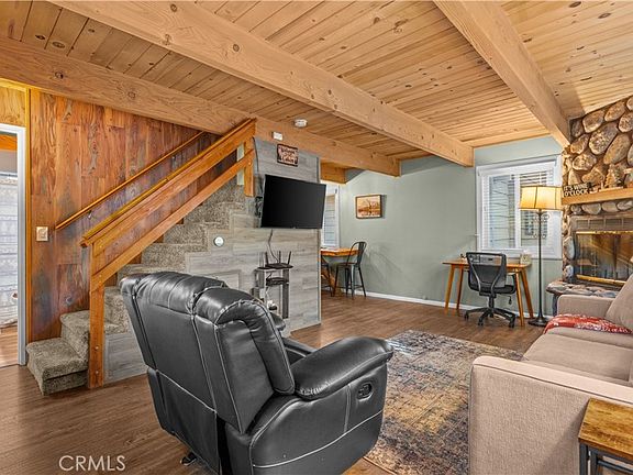 This cabin offers the best of both worlds: a peaceful, woodsy sanctuary with all the modern amenities, located just minutes from Big Bear Lake and all the action. The magic continues right into the backyard. Completely enveloped by beautiful, towering pine trees, the outdoor space feels like a forest sanctuary. This stunning setting is ideal for relaxation, featuring both a barbecue grill and a cozy fire pit. Picture yourself enjoying your morning coffee as the sun filters through the trees, gathering around the fire pit for S'mores in the evening, or hosting a delicious barbecue lunch. This outdoor space truly creates a beautiful setting for making mountain memories.