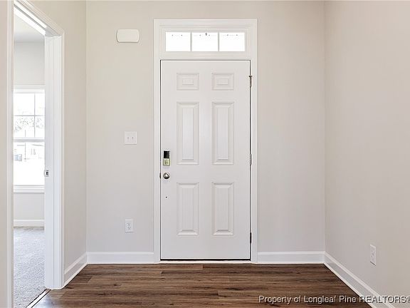 Welcome to this stunning home! The Aberdeen has a spacious great room flows effortlessly into the kitchen. Off the foyer, is a first floor bedroom with a walk-in closet that could also be used as a home office/flex room, with a nearby half-bath. The stylish eat-in kitchen features a sink island, granite countertops, white shaker cabinets, subway tile backsplash, and stainless steel appliances. The primary suite is a luxurious retreat with a tray ceiling, French door nursery access, and a spa-like en-suite bath with a soaking tub, separate shower & large walk-in closet. Upstairs, two bedrooms share a full bath, with a nearby laundry room. Enjoy LVP flooring throughout the main areas. Sliding doors lead to the grill patio, perfect for outdoor dining! Brookstone Village is a gated community located just off HWY 401 in the Raeford area, minutes from every resource and activity! The neighborhood will have a walking trail, covered picnic area, tot lot and a dog park! You are also just down the road from multiple grocery stores, shopping centers, and restaurants!