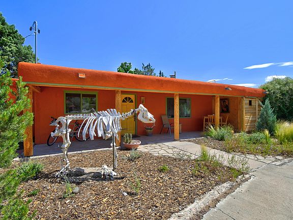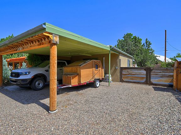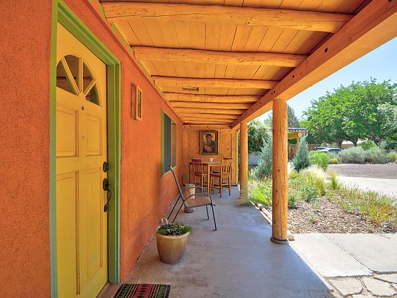 Charming, completely remodeled North Valley home with in-law quarters that sits on a dead end street. This warm and rustic home has wood ceilings, 5 skylights, saltillo tile floors, 3 fireplaces and is within walking distance to the remodeled part of 4th street, parks and the acequia ditch. Property is on 1/3 of an acre, is completely landscaped with mature fruit and evergreen trees. All appliances including an extra refrigerator and an extra washer and dryer convey. Two mini splits (one is brand new) also of convey as they are part of the remodel.