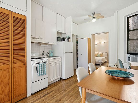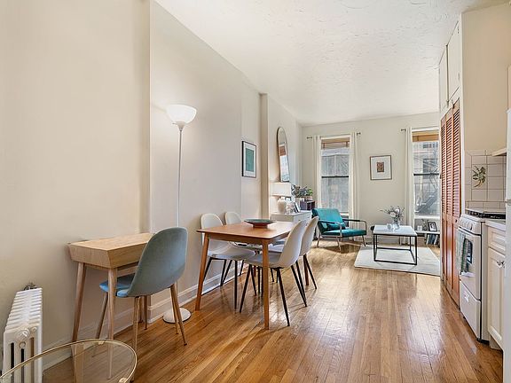 Move-in ready! Hell's Kitchen one bedroom perfectly located and ready for you. Only one-flight up in a very well-maintained walk-up building. Spacious and bright south-facing living room. Room for a home office. Eat-in-Kitchen. Bedroom easily fits a queen-sized bed. Windowed-bath. Great closet and storage space. Hardwood floors throughout. Laundry and more storage in building. The garden patio is the place to be for outdoor enjoyment. Live-in super. Subletting permitted after 4-years. Pet-friendly. Small dogs welcomed. Convenient to subways. Pied-a-terre ok. The building has just been improved with a new boiler and refinished facade. Special assessment of $277/mo thru November 2025. Theater lovers, Midtown and Hudson Yards office workers and everyone else, this is your new home. Maintenance includes WiFi and cable.