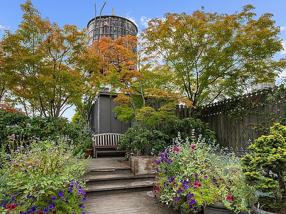 Vast skylight ceilingRooftop oasisBuilt-in grillBright home officeBlooming gardensExpansive in scaleCopper-toned island