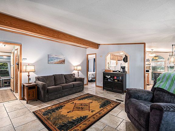 Charming Lakefront Home with Extensive Updates on Little Long Lake! This beautifully maintained 3 bedrooms, 2 bath manufactured home built in 1995 sits on the shores of Little Long Lake and offers year-round comfort with countless updates. The spacious property features a huge garage/workshop perfect for storage, hobbies, or just an area to work from home. Step inside to find a thoughtfully updated interior, freshly painted 2025, with new flooring throughout, porcelain tile 2024 and luxury vinyl 2025. The kitchen boasts updated cupboards, countertops, a cook’s sink with PEX plumbing, dishwasher 2020, and microwave. The bathrooms were fully refreshed in 2023–2024 with new vanities, lighting, toilets, and plumbing. A cozy propane fireplace 2024 enhances the family room, while central air and a new furnace 2017 keep the home comfortable year-round. Major improvements include: new roof 2017 on the home, garage, and treehouse; new well and septic field 2014; new hot water heater 2020; new garage door & opener 2024; and updated exterior doors and windows. Outdoor living shines here with lake frontage, a fenced yard 2018, raised garden beds, a treehouse with new railings and steps, and even a canoe planter. Relax, garden, entertain, or enjoy the lakefront lifestyle—all from your own backyard.