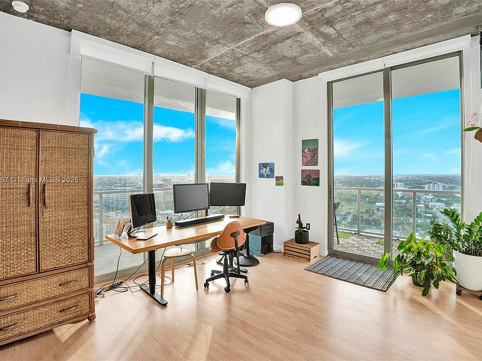 Perfect seasonal or annual retreat! Stunning corner unit boasts breathtaking sunset views from every room. Go into the expansive wrap-around Zen terrace, where you can indulge in outdoor living, gardening, and relaxation. Inside, discover a furnished 2BD oasis, ideal for long-term and short-term tenants. Modern amenities include an in-unit Washer/Dryer, a chef's island, floor-to-ceiling impact windows/doors, high ceilings, and a walk-in closet. Two Midtown offers a 5-star lifestyle with its full-service building, featuring a refreshing pool, cabanas, hot tubs, steam and sauna rooms, fitness center, valet, and concierge services. Plus, you'll be right in the heart of the district, surrounded by cafes, restaurants, Trader Joe's and more. Monthly housekeeping included for added convenience