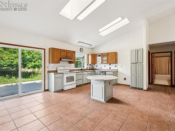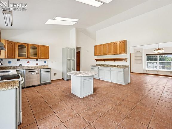 Welcome to this wonderful ranch-style home in the desirable Valley Hi neighborhood, just steps from Valley Hi Golf Course. Nestled on a spacious 0.28-acre cul-de-sac lot, this property offers nearly 3,000 square feet of living space with 5 bedrooms and 3 full bathrooms. Step inside to soaring vaulted ceilings, skylights, and a bright, open floor plan. The main level features gleaming hardwood and tile floors, a cozy living room with a gas fireplace, and a large bay window framing stunning Front Range views. The generous kitchen boasts stone countertops, an island, walk-out access, and plenty of room for entertaining family and friends. The primary suite offers an adjoining bath with a whirlpool-style tub and an oversized ADA-compliant shower. Two bedrooms are conveniently located on the main floor, while the finished basement provides three additional bedrooms, a spacious family room, storage, and a second laundry area—perfect for guests, hobbies, or multi-generational living. Enjoy summer evenings in your fully fenced backyard or relax on the patio while taking in the Colorado sunsets. Additional highlights include a 2-car attached garage with ample storage, central air, updated flooring, and high-speed internet availability. Located in School District 11, with easy access to shopping, dining, and military bases, this home truly has it all. Schedule your tour today—this Valley Hi gem is a must-see!