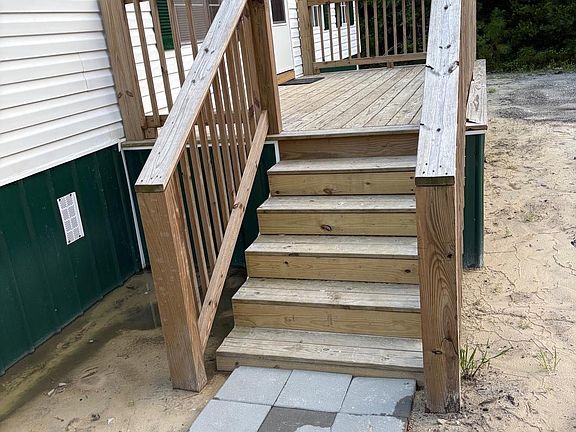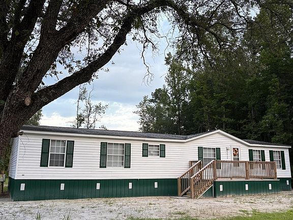 This move-in-ready manufactured home offers comfort, functionality, and space both inside and out. The oversized living room is filled with natural light, creating a warm and inviting atmosphere. The kitchen is a cooks delight with ample cabinet storage, brand-new appliances, and a generous dining area perfect for hosting gatherings or enjoying family meals. The master suite features a large walk-in closet and a private en-suite bathroom with a dual-sink vanity, providing convenience and personal space. You'll also enjoy a separate walk-in shower for added ease. Two additional bedrooms and a second full bathroom offer plenty of room for family or guests. A dedicated laundry area with its own private entrance makes everyday chores simple and efficient. Step outside to a spacious 10x16 front deck perfect for relaxing or entertaining and enjoy the expansive .72-acre lot. Other updates include a brand-new HVAC system (2025), giving you peace of mind for years to come. With its thoughtful layout, modern upgrades, and move-in-ready condition, this home is ready for you to make it your own.