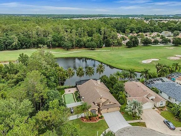 SPECTACULAR VIEWS from your Lake Bernadette Golf & Country Club home on a Premium OVERSIZED lot… Nature abounds from the Conservation beside the home, with an extra finger of land for a private walking nature trail, to your Private manicured views of the Fairway & Hole #15 of the Lake Bernadette Golf Course in the back over the POND from your screened lanai and Owners Retreat picture window! The warm hardwood floors welcome you to living/dining room with lighted art niches, large plant shelf and Stunning Stack stone Accent wall! Kitchen is the HUB of the home boasting Solid Hickory cabinets with Crown molding, glass cabinet insert and appliance garage, glass hammered metal hardware, Custom Granite island and counters with slate backsplash! OPEN to Great room, which has wood look ceramic tile floors, palette wood accent wall, custom lighted cornice over Triple sliders OPEN to PAVER deck with natural rock waterfall and gas heated jacuzzi spillover into your saltwater freeform swimming pool! Plenty of room to RELAX on covered back patio or swing in the Metal Gazebo poolside, enjoying serene water, golf course and conservation views in your screened lanai! Paver side patio is perfect for grilling or relaxing around the firepit…Practice on your private putting green with 5 holes before you play on the golf course! Privacy fence on side yard provides a place to park and store your toys, lawn equipment, bikes, jet skis or an additional play yard or garden! Owners Retreat is privately located at the rear with its own Minisplit AC, lighted hearth wood burning fireplace, lush tropical views and bath Ensuite featuring tasteful vanity with dual sinks, custom accent tile work, updated fixtures, lighting, raised commode, soaking tub and spacious shower with Stunning tile accents. Additional sitting area makes a great secondary office, fitness area or reading space with extra full bath for a his/hers Split bathroom floorplan in Owners quarters! Guest bedrooms and bath are on a separate wing with SPACIOUS closets with organizers & interior laundry room, just off the large 3 car garage! CUSTOM stairs and handrail usher you to the upstairs bonus room, interior paint and accent wall framing a Picture window with Palm Trees and Golf Course Views…perfect place to "Rest Easy" as an Office, Den, Fitness area, or additional bedroom. Upgraded features including: 2025 new roof, 2019 demand gas water heater, 2019 AC, air cleaning system and new ductwork, 2023 electric pool heater, 2015 gas jacuzzi heater sand filter. Come to Sunny Florida and Enjoy the Country Club lifestyle which includes amenities: 2 swimming pools, clubhouse, planned activities, basketball, tennis courts, fitness and the LINKS golf course pro shop and pub/grille. Don’t miss this RARE Opportunity to have your own piece of heaven and live in an updated haven with Golf Course, water and conservation views within close proximity to Orlando, Tampa, Lakeland, shopping, doctors, hospital, major highways, theater, bowling, YMCA, restaurants, Wiregrass Mall and Premium outlets…