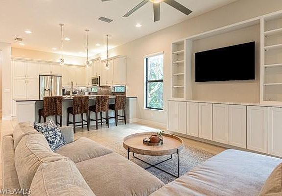 Now Available 2026 season and off season 2025. This immaculate and contemporary 2+ den (sleeper sofa in den) home offers a spacious kitchen opening to the great room. Enjoy the tranquility of the peaceful preserve from the oversized lanai. Located in the highly coveted North Naples community of Riverstone which features the clubhouse with a resort style pool and lap pool, spa, tennis, pickleball, fitness center, volleyball court, basketball, playground, community room and more. Close to dining and shopping and all that Naples has to offer.