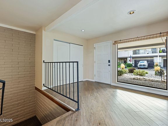 Welcome to Skyline Villas, where ease of living and calm sophistication connect! This beautiful Villa was recently remodeled with design, comfort and functionality in mind. Step into your foyer with wall to wall wood flooring and enjoy the natural light throughout, compliments of your Clerestory windows overlooking your lovely living space. The open floor plan is ideal for gatherings and is truly an entertainer's dream. Roar the fireplace on a winter evening or bring your coffee out to your patio for breakfast and watch the City of Reno wake up. The full downtown view is sure to please! The kitchen is a chef's dream, featuring a massive granite-veined quartz-topped breakfast bar, newer stainless steel appliances and custom Omega cabinetry with soft-close drawers. You'll love joining your guests at the bar stools or dining in your open dining room as there is plenty of space for gathering. The primary bedroom is a serene retreat; place a king-sized bed facing the city view and fall asleep to the urban glow. The en-suite bathroom is a spa-like sanctuary with a double vanity, an original deep-soaking tub and a gorgeous walk-in shower with glass enclosure. You'll love that the primary is on the main level and offers additional closet space for all of your belongings. Take the stairs down to the second half of your home and enjoy a huge family space, great for your game nights, homework stations, an additional living space or even a lounge. The original wet bar is still in-tact and was left untouched, a homage to the original build. There are two additional bedrooms, one being a secondary ensuite, an additional storage closet, a third full bathroom and a spacious laundry room to round out the basement. The finish work here is immaculate, with floor to ceiling flat walls, gorgeous wood flooring throughout, new baseboards, fresh interior paint, stacked stone fireplace, the removal of the infamous 70's ceiling popcorn, the removal of the basement wall panels and newer HV/AC and water heater~ and so much more! You'll enjoy a few original accents to give the design both taste and decorum as everything else in this property has been taken care of for you. The HOA offers ground and exterior maintenance, guest parking, two pools, tennis courts and a club house. Take in the city while feeling like you're no where near it. Pop on over today to see if this turn-key Villa is just what you've been looking for!