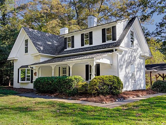 Welcome to this charming 1897 farmhouse in the heart of Pfafftown, NC! This historic 4-bedroom, 2-bath home blends timeless character with modern updates. The main level features soaring high ceilings, beautiful wood floors that add warmth and elegance, and an abundance of natural light. Relax and enjoy the serene surroundings on the large front porch, perfect for morning coffee or evening gatherings. The property also offers a convenient carport, providing shelter for your vehicles. Don't miss this rare opportunity to own a piece of history with all the comforts of today!
