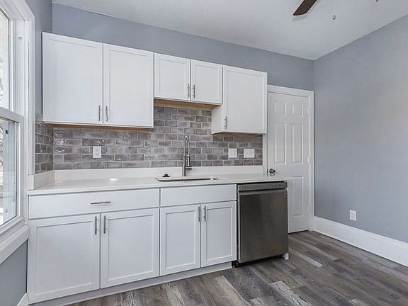 At the heart of the home is a chef-ready kitchen outfitted with brand-new stainless steel appliances, a sleek tiled backsplash, and plenty of cabinet space for all your culinary needs.