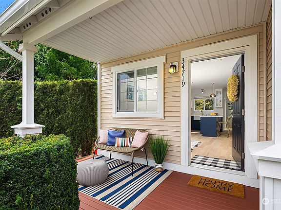 3 bedroom freshly painted cottage-style end unit, next to private green belt. Savor breathtaking Cascade mountain views from your own private covered front porch. Entertain effortlessly in the custom-designed modern kitchen featuring stainless steel appliances, farm house sink, and a spacious island. Upstairs the laundry room with W&D is conveniently located next to the size-able primary bedroom; and a beautiful full bathroom with marble sink and floor. This gem also offers two assigned parking spaces and a detached storage shed.Enjoy the convenience of being just minutes from I-90 and Highway 18, surrounded by scenic parks, trails, shopping, and dining options.Discover the epitome of comfort and convenience at Snoqualmie Ridge!