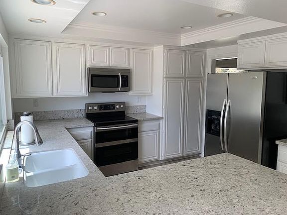 Beautiful 3 bedroom, 2 bath home available for rent in quiet Thousand Oaks neighborhood. Home features a 3 car garage with built in storage. Upgraded kitchen boasts quartz countertops and stainless steel appliances (refrigerator included). Travertine flooring throughout main living areas, fresh paint, new carpet, ceiling fans in every room. Gorgeous backyard has privacy fence surround, built in gas fire pit, and several fruit trees. Property has a tankless water heater and double paned windows. Washer/dryer are included. Minimum 1 year lease. Tenant responsible for all utilities. Weekly gardener service included in rent. Weekly gardener service included, renter responsible for all utilities.