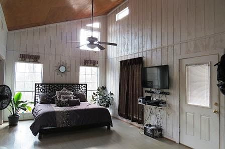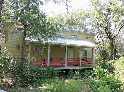 The perfect private country retreat, surrounded by deep woods and overlooking a pond in front and a year-round creek behind. Huge front porch plus rear deck, Swedish-style wood stove. Ideal for an art ist, musician, writer, or anyone seeking a unique, contemporary, open concept style home, with lots of light and surrounded by gorgeous views. Possible second home for someone looking for a weekend pl ace, or a cozy and quiet full-time residence, in a natural setting 20 minutes from Bryan. 2 acre lot with two storage buildings, 1 with a window A/C unit, and a carport. Newly re-graded driveway.