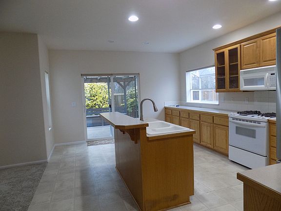 Exquisite three bedroom, two bath home with so much to offer! Enjoy the spacious vaulted living room with carpet, gas fireplace, large windows with lots of natural light. Large open kitchen with beautiful oak cabinets, garden window, fridge, dishwasher, gas range, built-in microwave and lots of counter space. Spacious laundry room with washer/dryer hook-ups and plenty of cabinet space. Enjoy the large wrap around deck with patio cover which opens up to an attractive backyard. The front and back yard has a irrigation system to keep grass green and trees pretty. This home has an attached two car garage, tool shed along with a adorable playhouse/storage shed or office space and a huge cement RV parking with hookups. Relax and appreciate the A/C on those hot summer days. Tenants are responsible for all yard care and utilities. Pets are welcome with additional deposit and pet rent. This is a no smoking/vaping property and renter Insurance is required. This is an HOA property and HOA rules must be followed.
