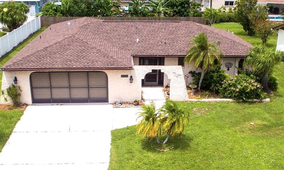 **PRICE DROP** 3 Bedroom, 2 Bath POOL Home Ready for Your Updates and TLC! Open and spacious floorplan has a split-bedroom design, formal entry, a large family room with double French Doors, and tile flooring throughout for the exception of the 2 guest rooms. Most bedrooms & baths have pocket doors, and the bedrooms each have walk-in closets. The kitchen features paneled cabinetry and a stainless double sink with a window view. Ceiling fans are installed in almost every room! New roof in 2024. A/C new in 2020. Outside you’ll find mature landscaping surrounding a Mediterranean-Style exterior with traditional stucco on concrete block walls. An arched courtyard facade is featured to accentuate the design. Formal double glass panel doors adorn the entryway with a screened & tiled front porch to protect you from the elements or bring in a breeze! Your backyard is surrounded by your neighbor's fencing on 2 sides. New safety fencing surrounds the 25x10 gunite pool and deck, and a solar cover is provided as well. The home features an irrigation system, a shed, and gutters & downspouts that surround the home. In the garage you’ll find a laundry area, workbench area, pull down attic stairs and a separate side entrance for convenience. Also included - Screen Panel Sliders for your Garage Door! This home has so much going for it! It just needs you to bring out it’s sparkle! Make it yours today!