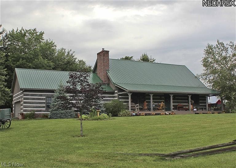 Remarkable, private, rustic, warm, inviting log dream home with breath-taking character. Hand cut logs w/extra insulation chinked to perfection. Quality, natural materials used throughout. Gorgeous great room w/vaulted ceiling showcases a wonderful brick fireplace w/woodburning insert and Heatilator. Enjoy this fantastic view from the loft upstairs. Pine hardwood floors throughout & a stunning wood staircase adds to the charm. New within the last year: custom kitchen from Keim, sage glazed painted w/roll out shelves. Granite counter with kitchen island having a butcher block top and eating area. First floor master & laundry. Delightful sun room exits out back to the newly constructed deck & pergola. Back yard has professional fencing w/4 gates. Metal roof this year! Situated on 5.61 mostly wooded acres in a fantastic location amongst larger parcels w/beautiful homes. 20 minutes to Canton or New Philadelphia. 5 minutes to Atwood Lake.