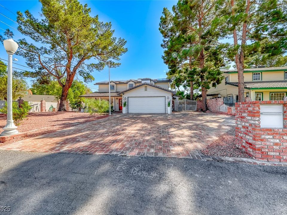Vintage Cape Cod charm meets Las Vegas living! This 2,679 sq. ft. home blends timeless character with modern comfort. Two spacious primary suites feature spa-like bathrooms and a private balcony—perfect for morning coffee or evening sunsets. The chef’s kitchen boasts a commercial-grade stove/oven and large brick island with butcher block counter, ideal for culinary adventures. The huge family room invites gatherings with its cozy wood-burning fireplace, built-in bookcases, convenient desk, and nearby half bath. Step outside to your own private resort with a sparkling pool, an expansive covered patio for entertaining, and a 10x14 tough shed transformed into a tiki bar for year-round fun. There is an outside area perfect for furry friends at one end, and on the opposite end of the home an area for rv parking and toys. There are roof mounted solar electric panels for energy efficiency! A rare find offering personality, versatility, and endless possibilities in the heart of Las Vegas!