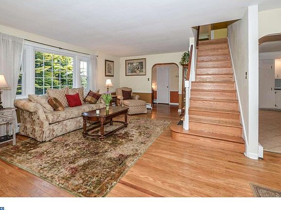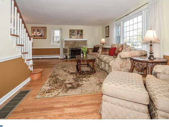 Charming move-in ready, Cape-style home on quiet Huntingdon Valley Street. 4 BR, 3 baths, loaded with charm and character. Spacious, bright, lots of natural light. Formal living room with wood-burning stone fireplace, leading to dining room, exit to slate patio. Dining room has adjoining eat-in kitchen with granite countertops,subway-tile backsplash, tile floors, new stove/oven and refrigerator, also a built-in microwave and dishwasher. Off kitchen is another living space with second stone, wood-burning fireplace, exposed beams and access to a covered patio. First floor has two BR and 2 baths (Master BR has en suite bath with claw-foot tub/shower and walk-in closet). Upstairs, 2 spacious BR and a full bath with updated fixtures. Hardwood floors throughout house; cedar closet. Full finished basement with electric heat, laundry area with plenty of space and newer washer and dryer and basement freezer. Acre yard, fenced backyard with several outdoor seating areas, shed, several perennial gardens and small pond. Gardener's paradise! Detached 2-car garage, plus space for up to 6 cars in driveway. High-regarded Lower Moreland school district.This gem will sell fast