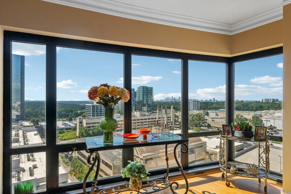Enjoy breathtaking, unobstructed views of the Atlanta skyline from this beautiful 2-bedroom high-rise condo at The Oaks at Buckhead-one of the city's premier addresses. Floor-to-ceiling windows flood the open-concept living space with natural light, while hardwood floors throughout and crown moulding add warmth and sophistication. The modern kitchen boasts sleek ...