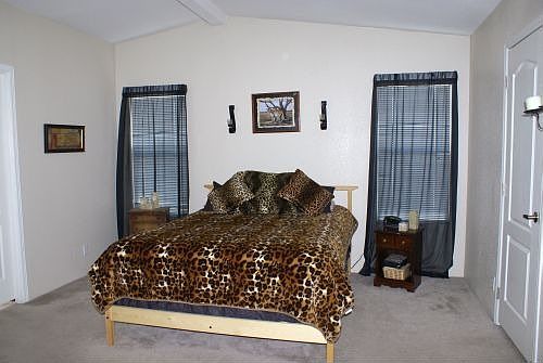 Great 3 bedroom 2 bath home. 1620 SF. Large living room. Stone fireplace with blower. Huge kitchen with skylight and lots of cabinets, center island and a built in desk and hutch. Large master bedroom. Master bathroom has large oval tub with a separate walk-in shower and skylight. Front and back doors have Security screen doors. 3 separate patio areas. Steel garage with loft for storage. Level corner lot. Property is chain link fenced with two drive gates. Front deck. Must see!!