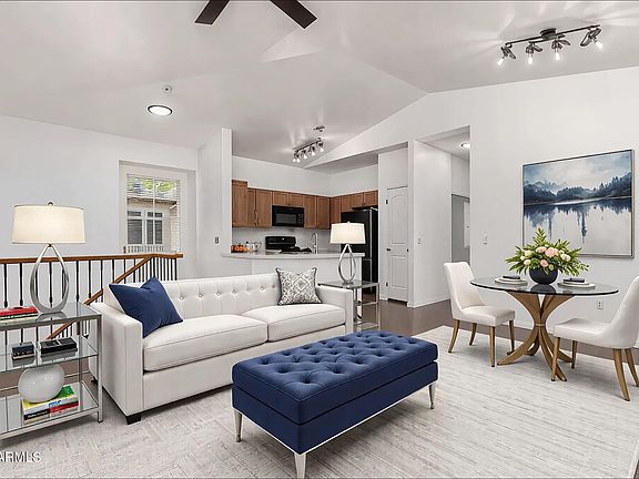 Welcome to this enchanting Free Standing Townhome, offering the delightful essence of single-family living! Here lies an exceptional opportunity to claim a meticulously cared-for residence nestled within the prestigious Tramonto community of North Phoenix. This charming 3-bedroom, 2-bathroom haven boasts just under 1,100 square feet of radiant, open living space, tailored for those who cherish comfort, convenience & elegance. NEW CARPET, PAINT, LIGHTING & FIXTURES. Immerse yourself in the splendor of the great room, where vaulted ceilings elevate the very feeling of spaciousness.Split-Bedroom Layout: This thoughtful design promotes privacy & versatility, making it perfect for families, roommates, or cherished guests. Cozy Kitchen offers a Breakfast Bar & Great Storage! TSMC within miles! Resort-Style Amenities: Residents are treated to sparkling pools, lush parks, basketball courts, tennis, pickleball & picturesque walking paths, all designed to elevate your lifestyle.
