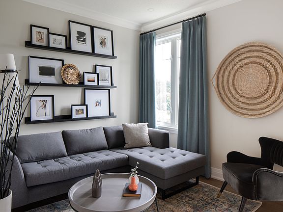 The Valleyfield features a charming front porch and foyer leading to the rest of the open-concept living space. To the right, find peace and quiet in the separate den that can double as a home office. Step into a distinctive main floor living space that features a dining room, a great room, and a spacious kitchen flowing seamlessly together. Ample light is provided by the large, bright windows off the breakfast area. Conveniently tucked away is a powder room which provides access to the garage. Upstairs, relax in the private primary bedroom with a walk-in closet and an ensuite, with an optional bath oasis for a relaxing at-home spa experience. Enjoy the convenience of a laundry room that is close to the main bath and bedrooms 2, 3 and 4. The Valleyfield offers a variety of options to personalize your home, including the option of adding a curved railing in the loft.