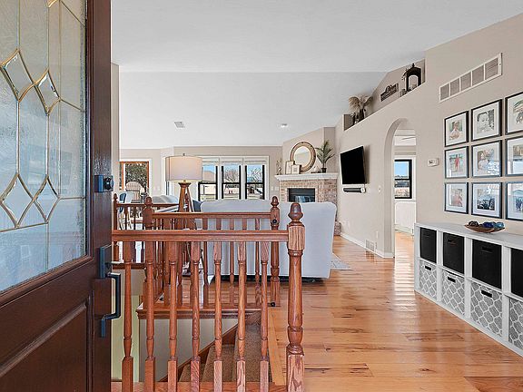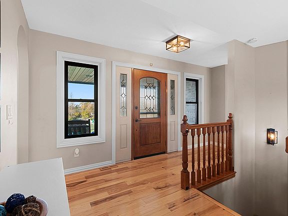 Stunning open-concept home set on a 1-acre lot offering the perfect blend of convenience and tranquility. Enjoy sunrises over the backyard and sunsets across the bay. The main level features a primary suite with a walk-in closet and private bath, plus two additional bedrooms and laundry room. The airy kitchen and dining area flow seamlessly to the deck and patio—perfect for entertaining. The finished lower level includes a family room, bedroom, full bath, office, and bonus room. Enjoy a heated 3 stall attached garage with basement access, plus a heated 2.5-stall detached garage for extra storage or workspace. Surrounded by open fields and visiting wildlife, this home offers peaceful privacy with bay views just minutes from town amenities. Close proximity to Eagles Nest Boat Launch