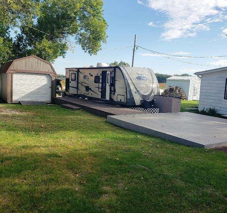 This is a nice lake lot that has a 12 x 20 garage and an RV with a deck. The garage offers two lofts and laundry facilities. The RV has a nice deck and offers on the inside a kitchen with the range/oven, refrigerator and microwave, a dining area, living room, 1 bedroom and the bathroom. The RV sleeps approximately 6 people. This is a great property right on the lake and includes a dock. Enjoy the lake life!
