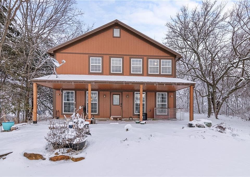 ENJOY THE BEST OF COUNTRY LIVING! Private oasis on 1.8 acres m/l! Kick back and relax on the long front porch while sipping your favorite beverage. Open Main Level Living with Spacious Family Room with built-ins. Large eat-in country kitchen includes built-in pantry! Bonus den area! Main level mud/laundry room. Head up after a long day to the primary suite complete with walk-in closet, private bath with whirlpool tub and bonus sun/sitting room! 2 more bedrooms and 2nd full bath on this level! 2 Level Storage Shed with equipment included for solar or wind power! Fantastic location just minutes to Lawrence & I-70 making it easy to get anywhere quickly and conveniently! Just off paved road!