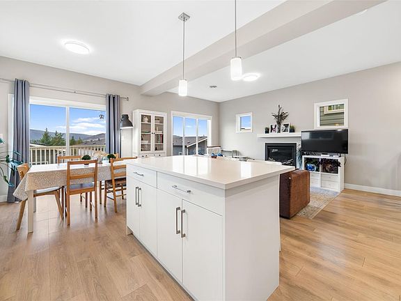 Welcome to this modern 2021-built home offering 4 full bedrooms and 3 bathrooms, designed for bright, contemporary living. The open-plan main level features a large island kitchen with white quartz counters, a gas stove, a cozy gas fireplace, abundant windows, and a spacious deck with beautiful valley and mountain views. Upstairs, 3 generous bedrooms include a primary suite with a walk-in closet, dual sinks and heated floors. The fully finished walkout basement provides a family room, covered patio, and 4th bedroom—ideal for guests or a home office. Quality continues with 9 foot ceilings, ultra-efficient gas heat, on-demand hot water, keypad garage entry, energy-conscious construction, and the assurance of a 10-year home warranty. Outside, enjoy a small, easy-care grassy yard. Located near the quiet south end of Jacklin, close to parks, trails, Westhills Shopping Centre, schools, and the YMCA, this home blends comfort, convenience, and modern style—move-in ready for today’s lifestyle.