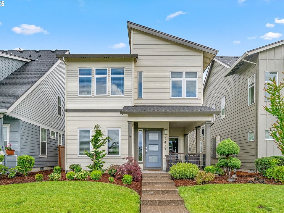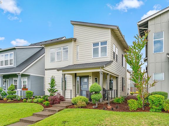 Exceptionally maintained and move-in ready! This beautiful home features an open floor plan with high ceilings and an abundance of windows, filling every space with natural light. The kitchen shines with granite countertops, an island with eating bar, and seamless flow into the living and dining areas — creating a spacious great room that’s ideal for entertaining. Upstairs, you’ll find a large primary suite with a walk-in closet, double sinks, and a walk-in shower. The roomy laundry area offers built-in shelving for added convenience, and the hall bathroom also features double sinks. Upgraded, pet-resistant carpet throughout the upper level provides comfort and durability. Located in South Hillsboro’s beautiful Reed’s Crossing community, this home is surrounded by trails, parks, shopping, restaurants, and more — making it the perfect place to call home. [Home Energy Score = 9. HES Report at https://rpt.greenbuildingregistry.com/hes/OR10239368]
