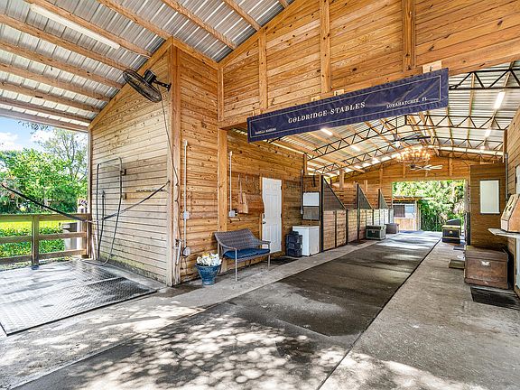 Price reflects entire barn and shed (9 stalls total) + studio apartment + 2 RV hookups per month for annual. Seasonal rent available for $12,000 per month.This property has everything you need for the season: 6 (14x14) stalls in the center aisle barn with fly spray system plus 3 (12x12) in a shed row, all with rubber mats and fans. There's an AC tack room and feed room. This listing includes a studio apartment with a full bathroom and laundry.Outside you'll find easy access to trails, 5 grassy paddocks, trailer parking, and 2 RV hookups. The all-weather arena comes with a full set of jumps with fillers.