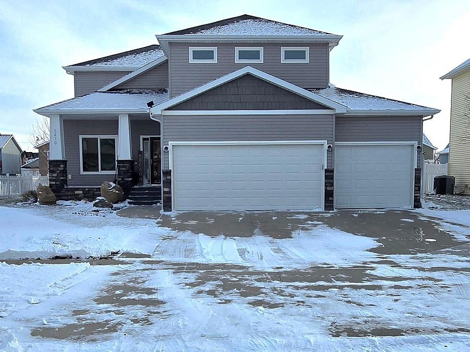 Beautiful 2-Story Home in Shadow Wood in West Fargo. Fantastic location close to the middle school, high school, and nearby city parks. This spacious home features 5 bedrooms, 4 bathrooms, a 3-stall insulated garage, epoxy garage floor, maintenance-free fencing, a deck, and a welcoming front porch with pillars. Main Level includes Den/office with frosted doors off the front entry. Open-concept kitchen, dining, and living room with vinyl plank flooring. Half bath and a mudroom with closet.